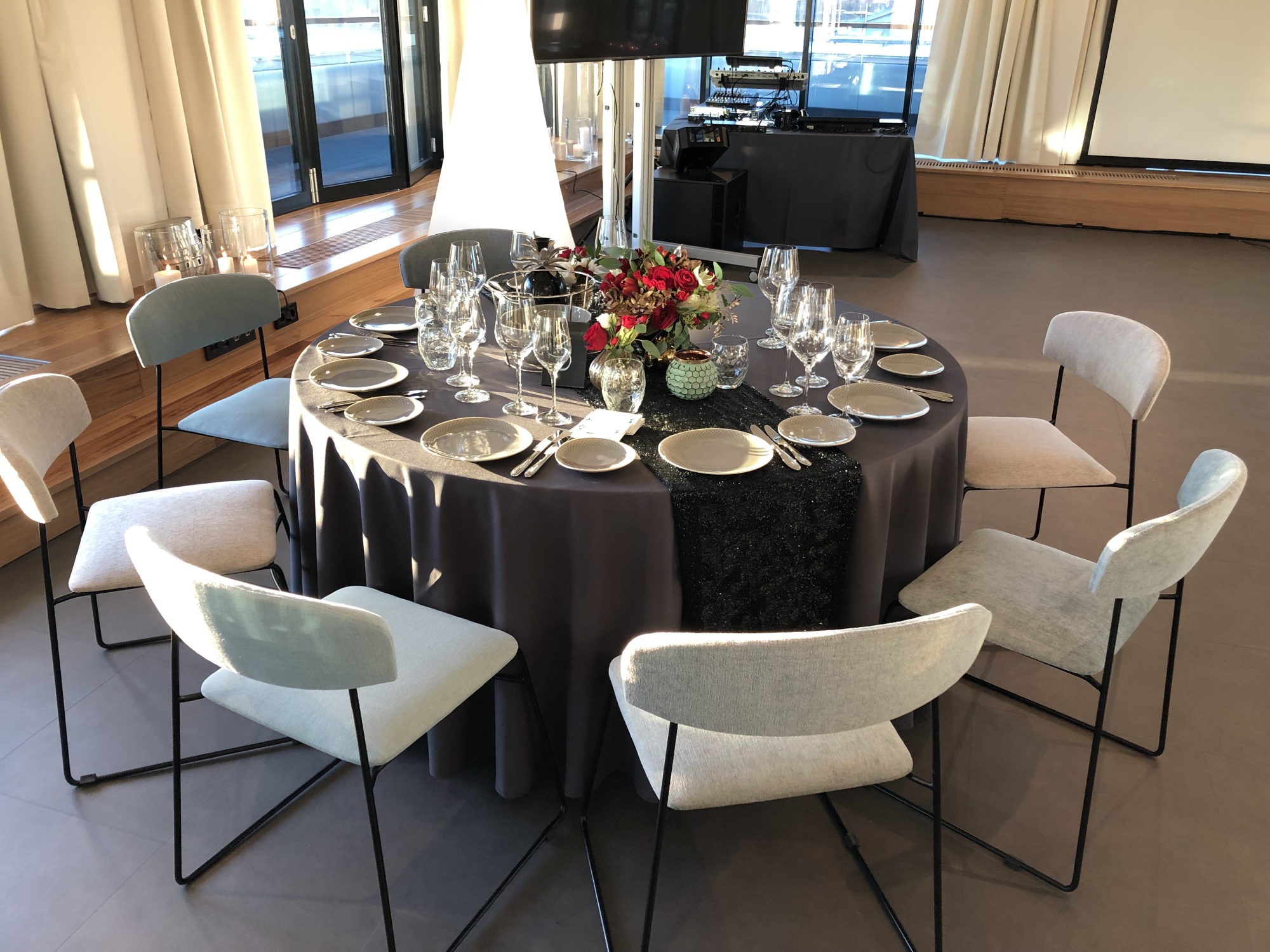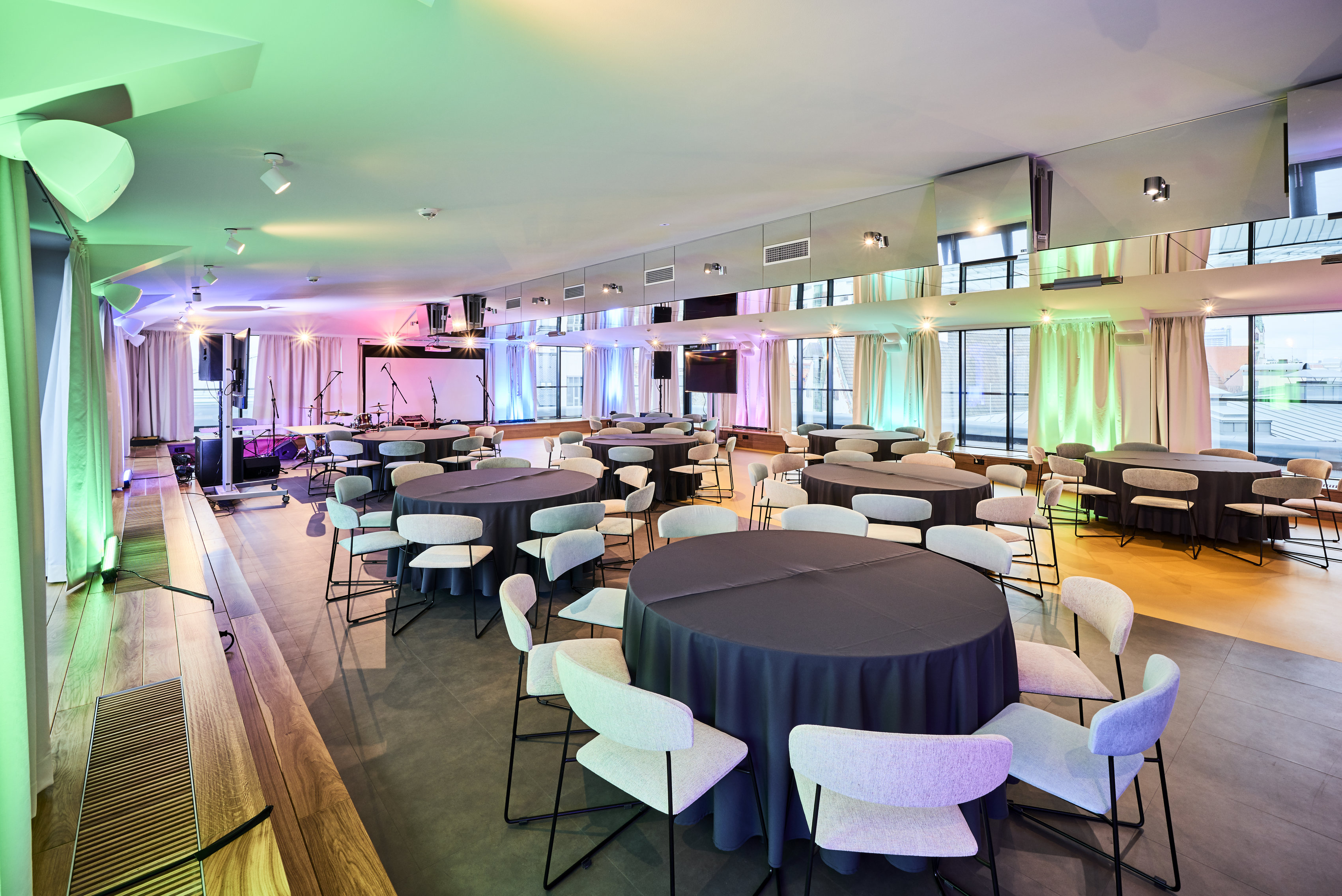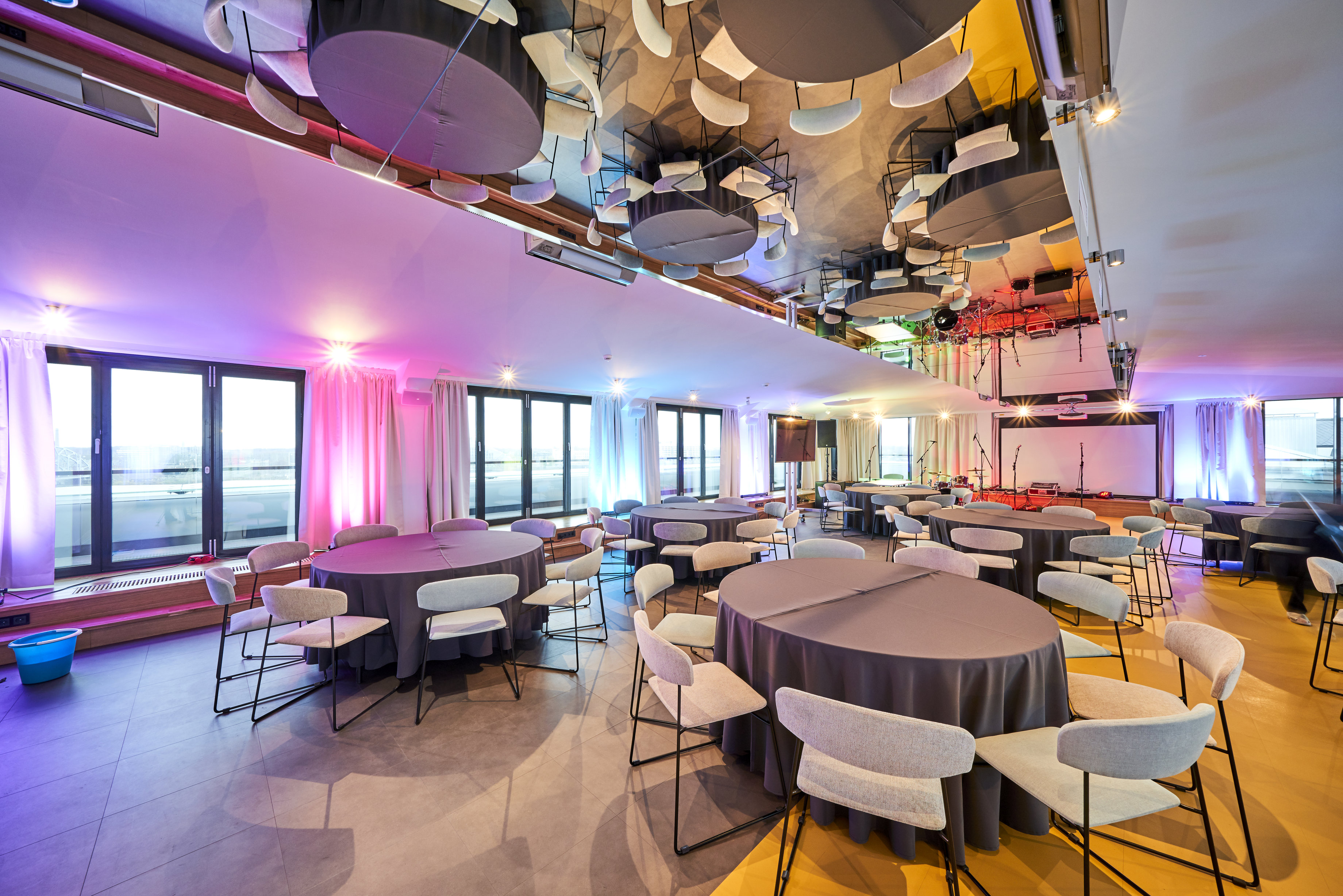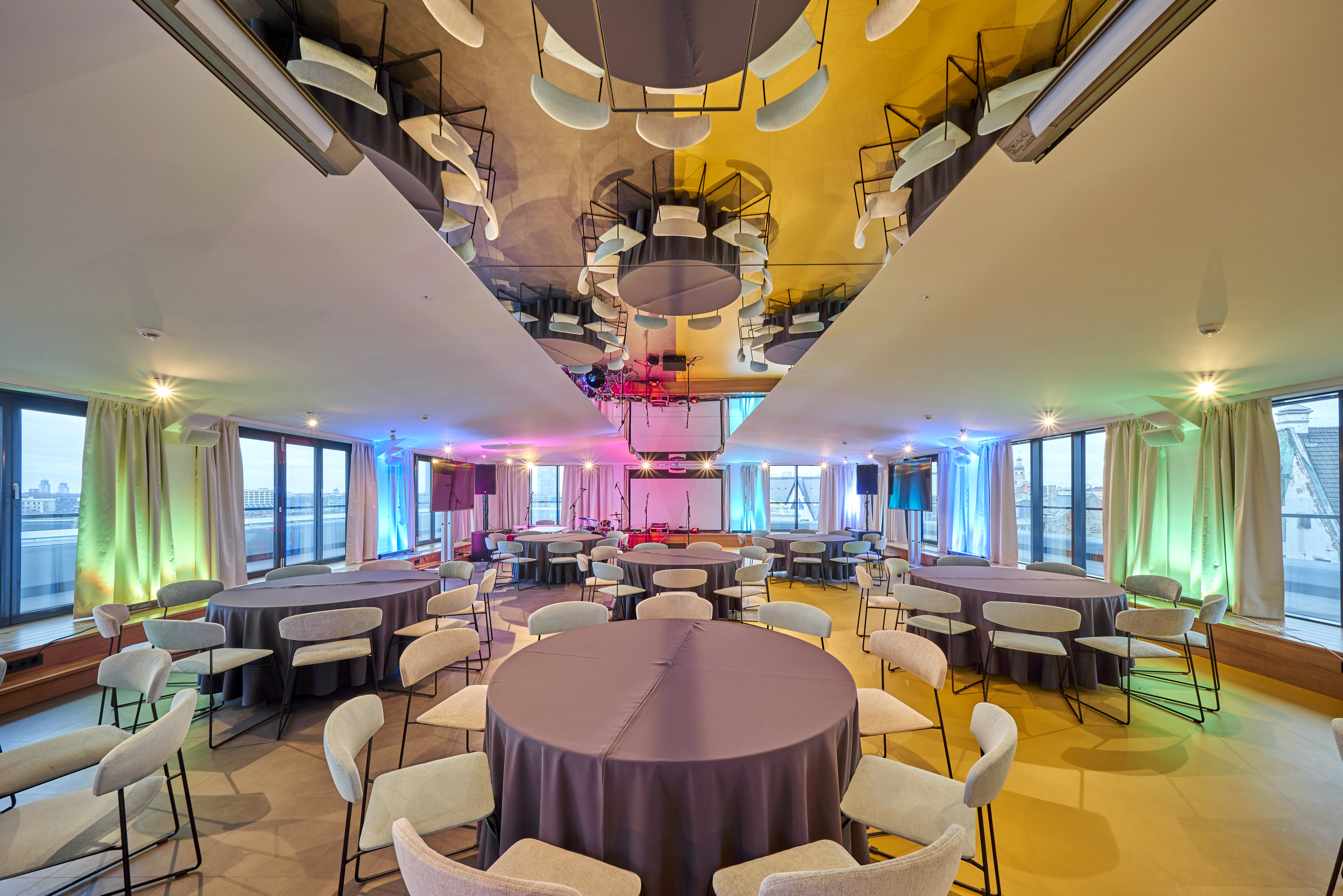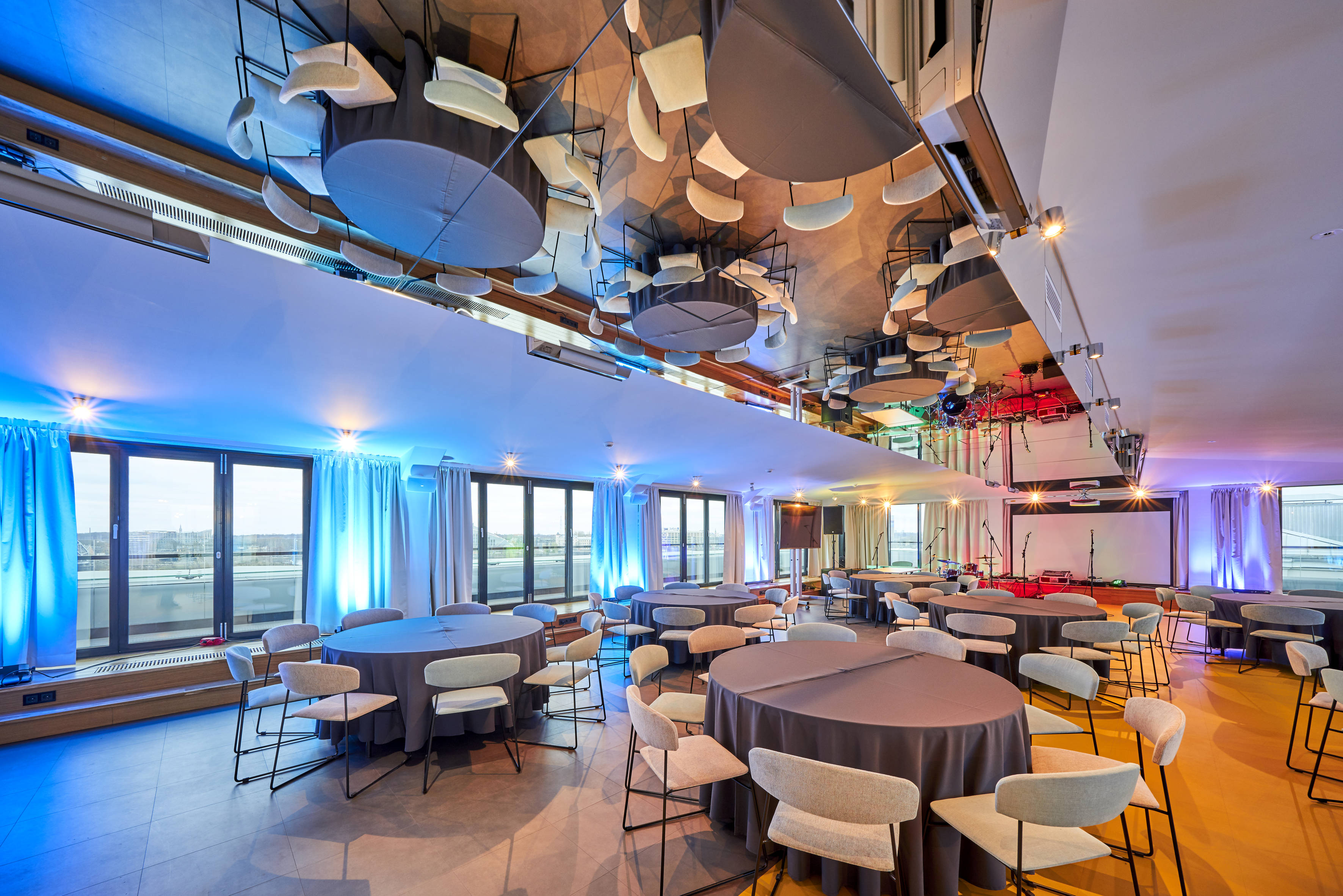 On the top floor of the Wellton Riverside SPA Hotel there is a stylish banquet hall with an area of 189.6 m2 with large panoramic windows and access to the terrace, which offers a magical view of Riga and the Daugava River.